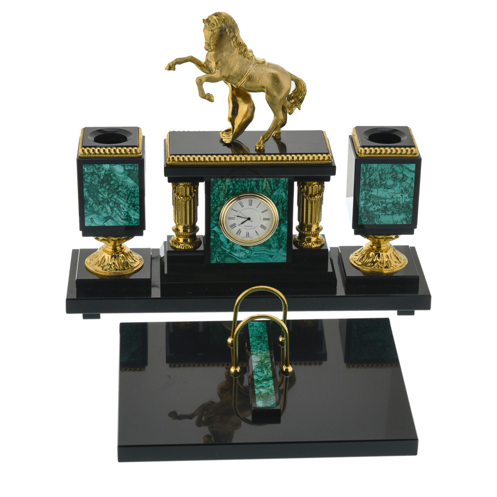 Bộ để bàn làm việc bằng đá malachite tự nhiên “Ngựa”