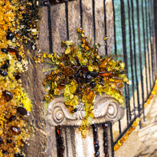 Tranh hổ phách là một sản phẩm nghệ thuật được ghép nổi từ đá hổ phách tạo hình, phối màu tạo nên những bức tranh cực kỳ độc đáo đẹp mắt và rất sang trọng, thường được trang trí và bài trí trong phòng khách.